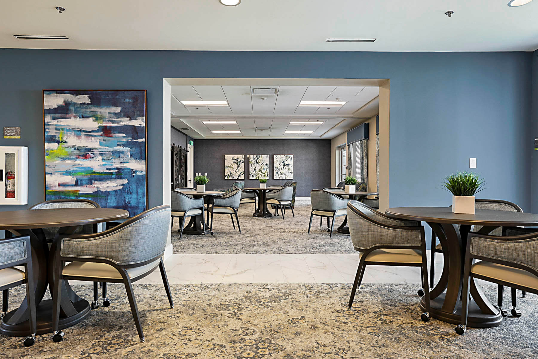 A key component of the project involved strategically reusing approximately 50% of existing furniture and furnishings, allowing the community to achieve a refreshed, hospitality-driven look while maximizing return on investment. The result is a thoughtfully updated environment delivered on an accelerated timeline and under budget.