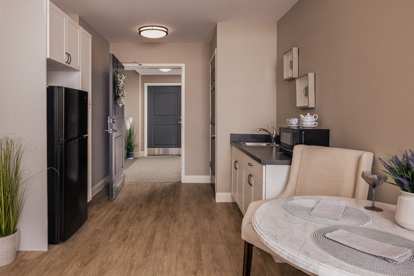 A newly developed assisted living and memory care community where Austera Group delivered a cohesive interior design strategy across four floors, activating amenity spaces through thoughtful furnishings, curated artwork, and hospitality-driven design that balances warmth, functionality, and durability.